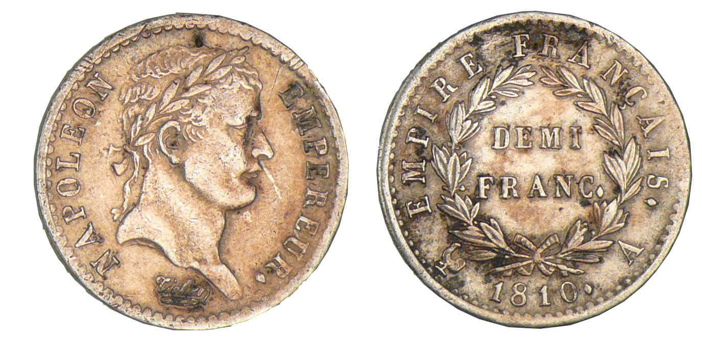 1/2 franc Napoléon revers empire 1810 A (Paris)