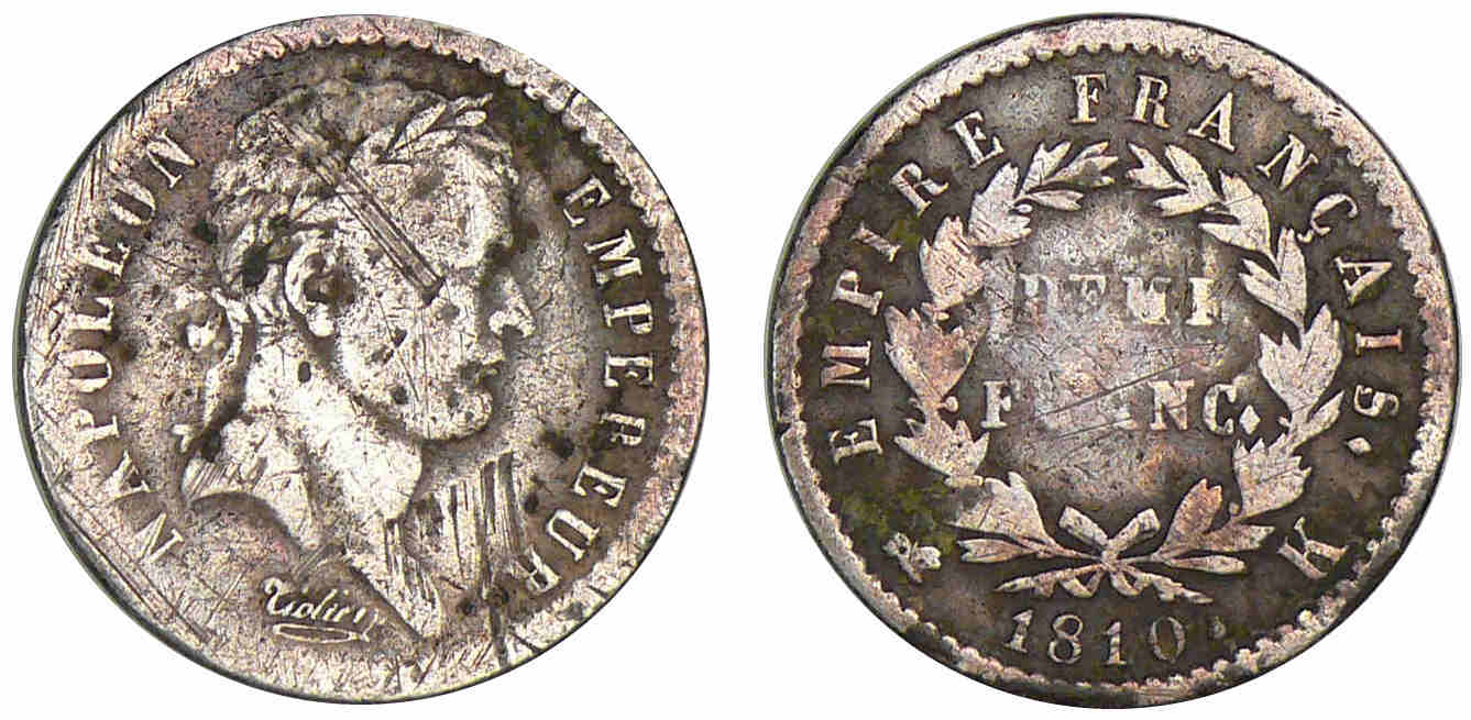 1/2 franc Napoléon revers empire 1810 K (Bordeaux)