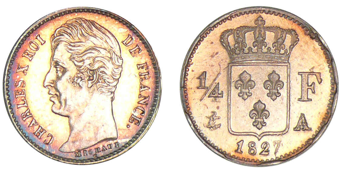 1/4 de franc Charles X – 1827 A (Paris)
