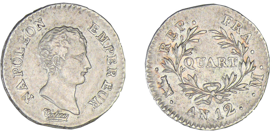1/4 de franc Napoléon empereur – An 12 M (Toulouse)