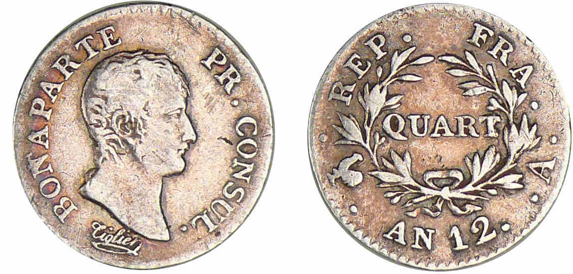 / 1/4 franc Bonaparte premier consul – An 12 A (Paris)