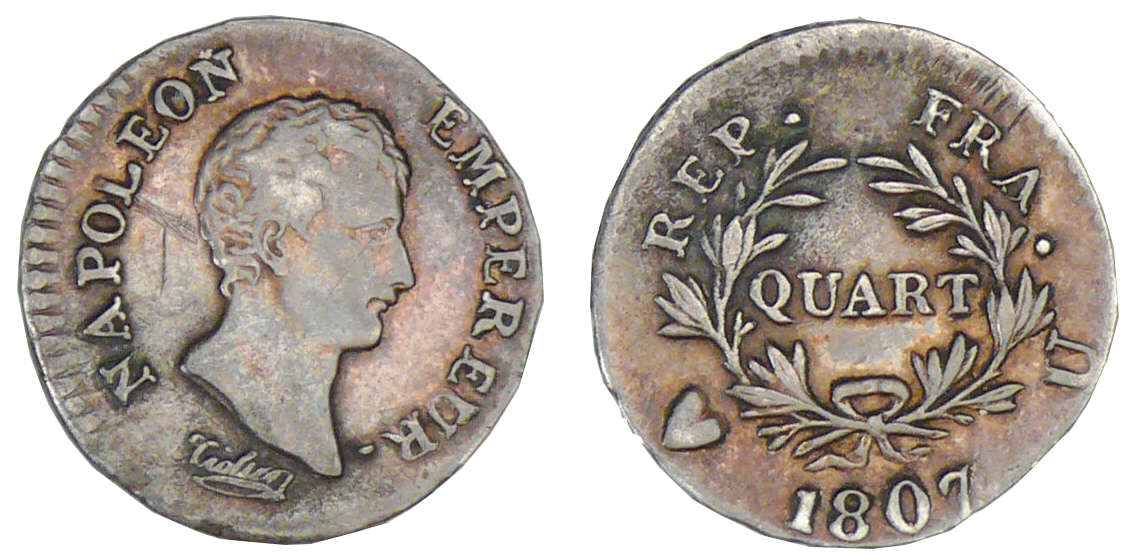 1/4 franc Napoléon empereur 1807 U (Turin)