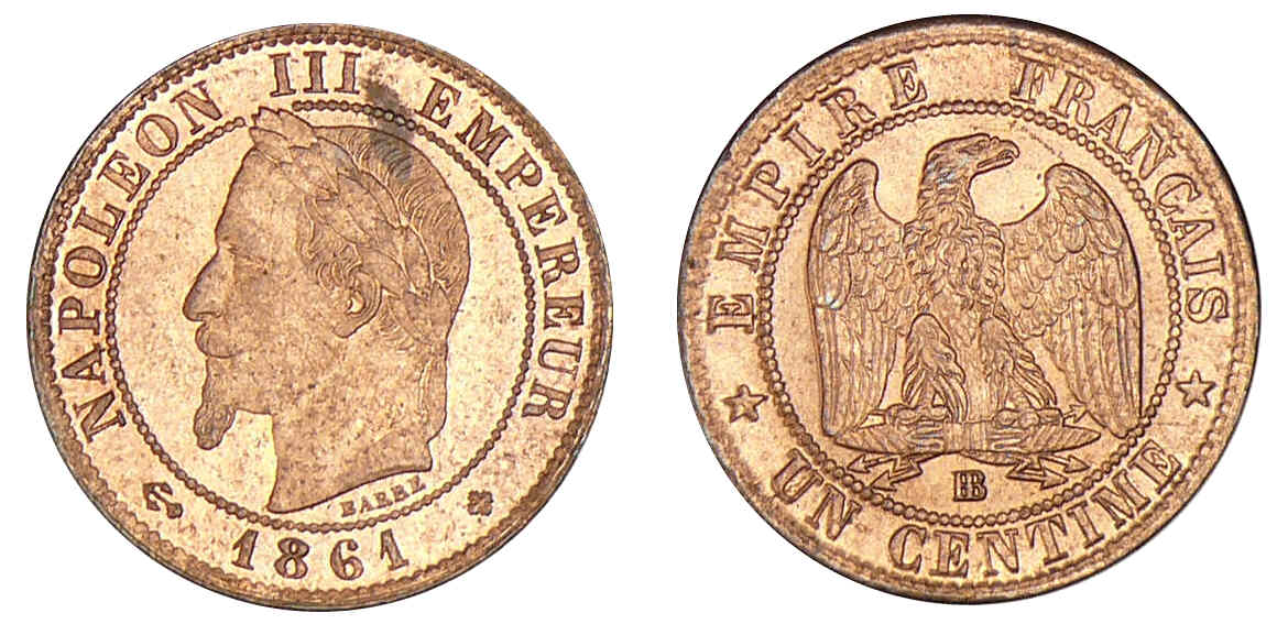 1 centime Napoléon III tête laurée 1861 BB (Strasbourg)