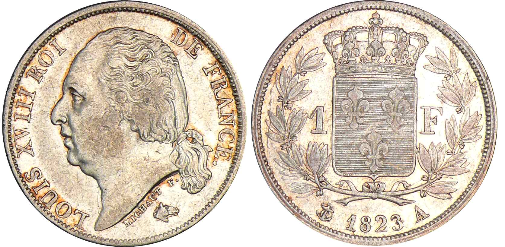 1 franc Louis XVIII au buste nu – 1823 A (Paris)