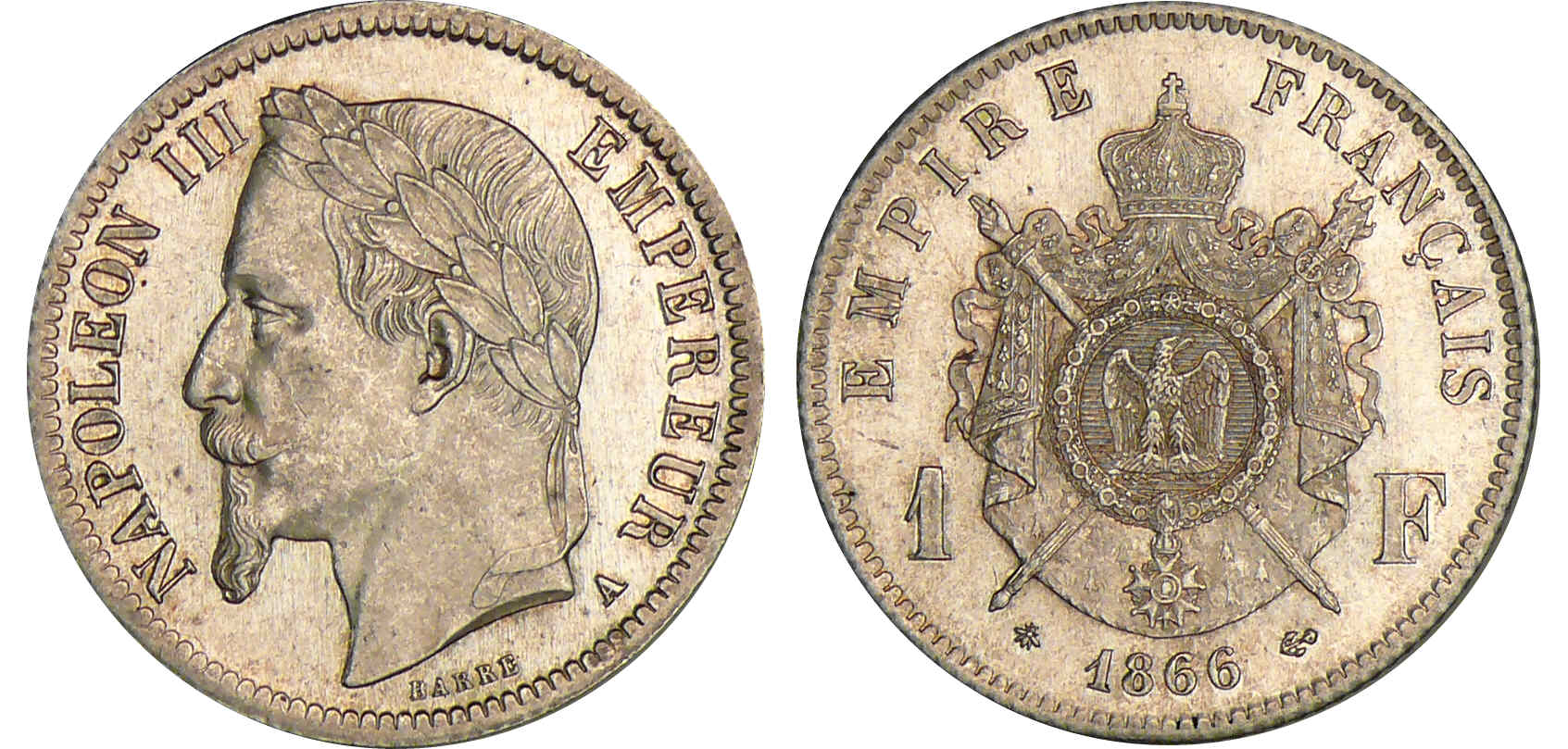1 franc Napoléon III tête laurée – 1866 A (Paris)