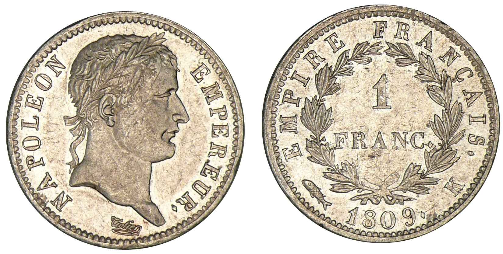 1 franc Napoléon revers Empire 1809 K (Bordeaux)