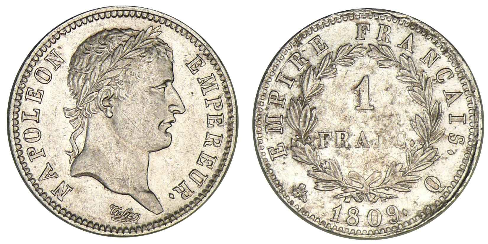 1 franc Napoléon revers Empire 1809 Q (Perpignan)