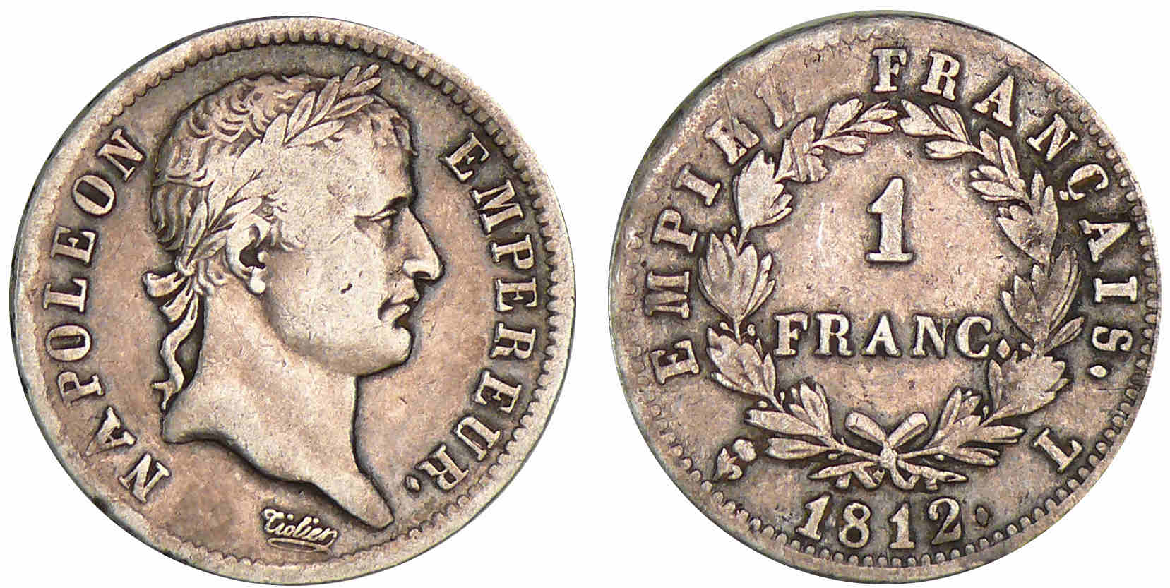 1 franc Napoléon revers empire 1812 L (Bayonne)
