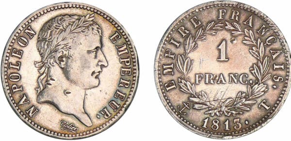 / 1 franc Napoléon revers empire 1813 T (Nantes)