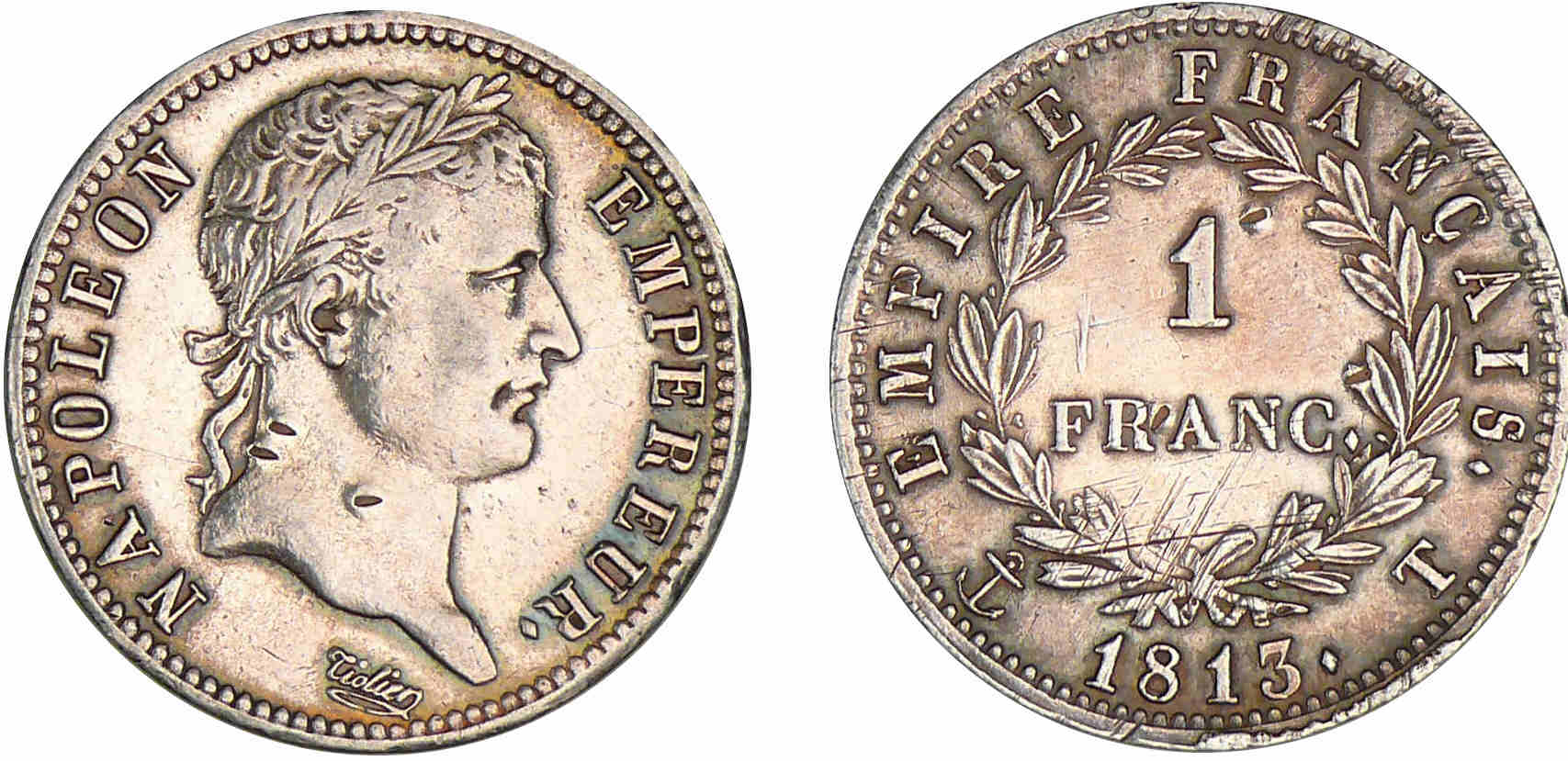1 franc Napoléon revers empire 1813 T (Nantes)