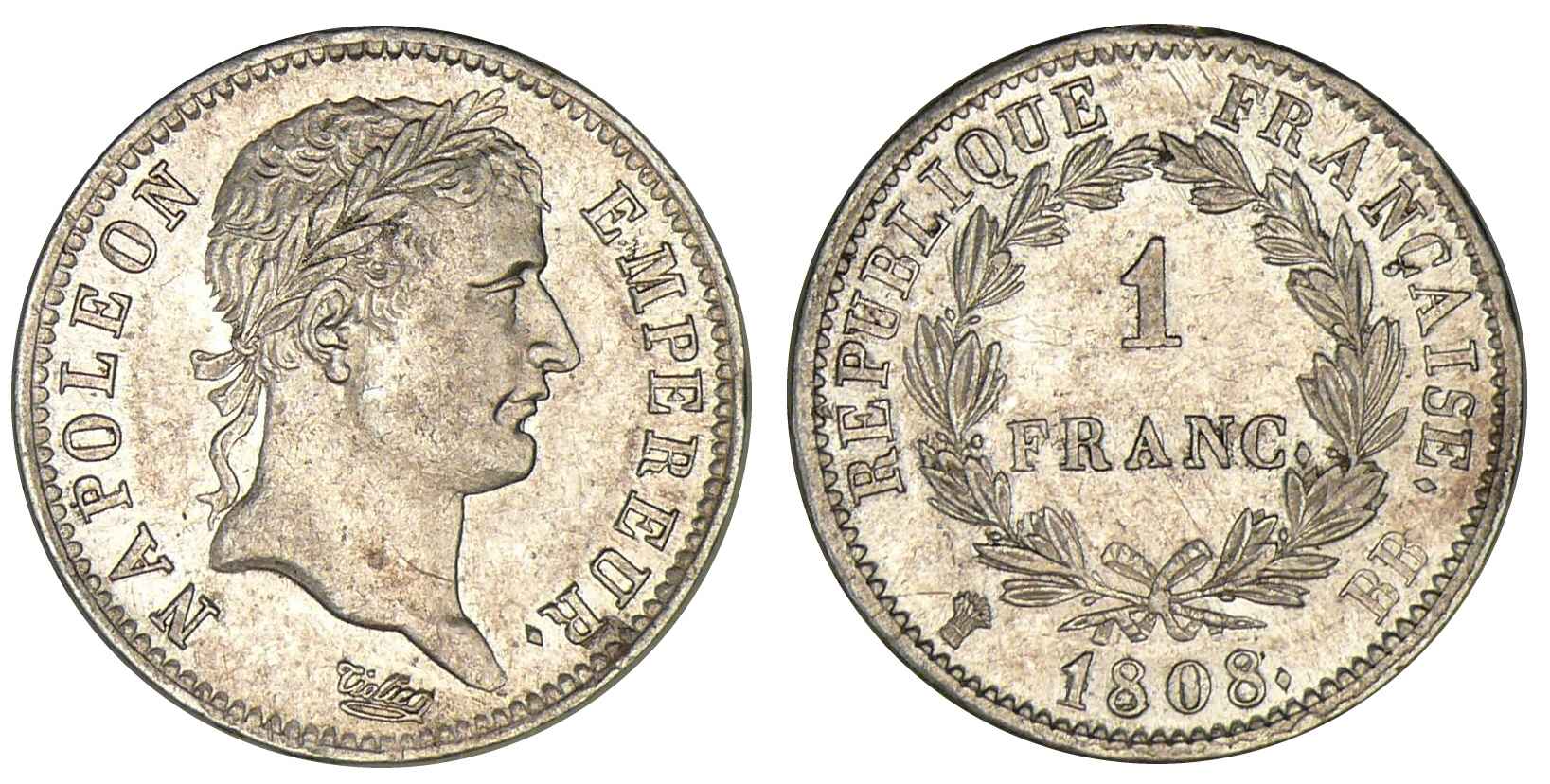 1 franc Napoléon revers République 1808 BB (Strasbourg)
