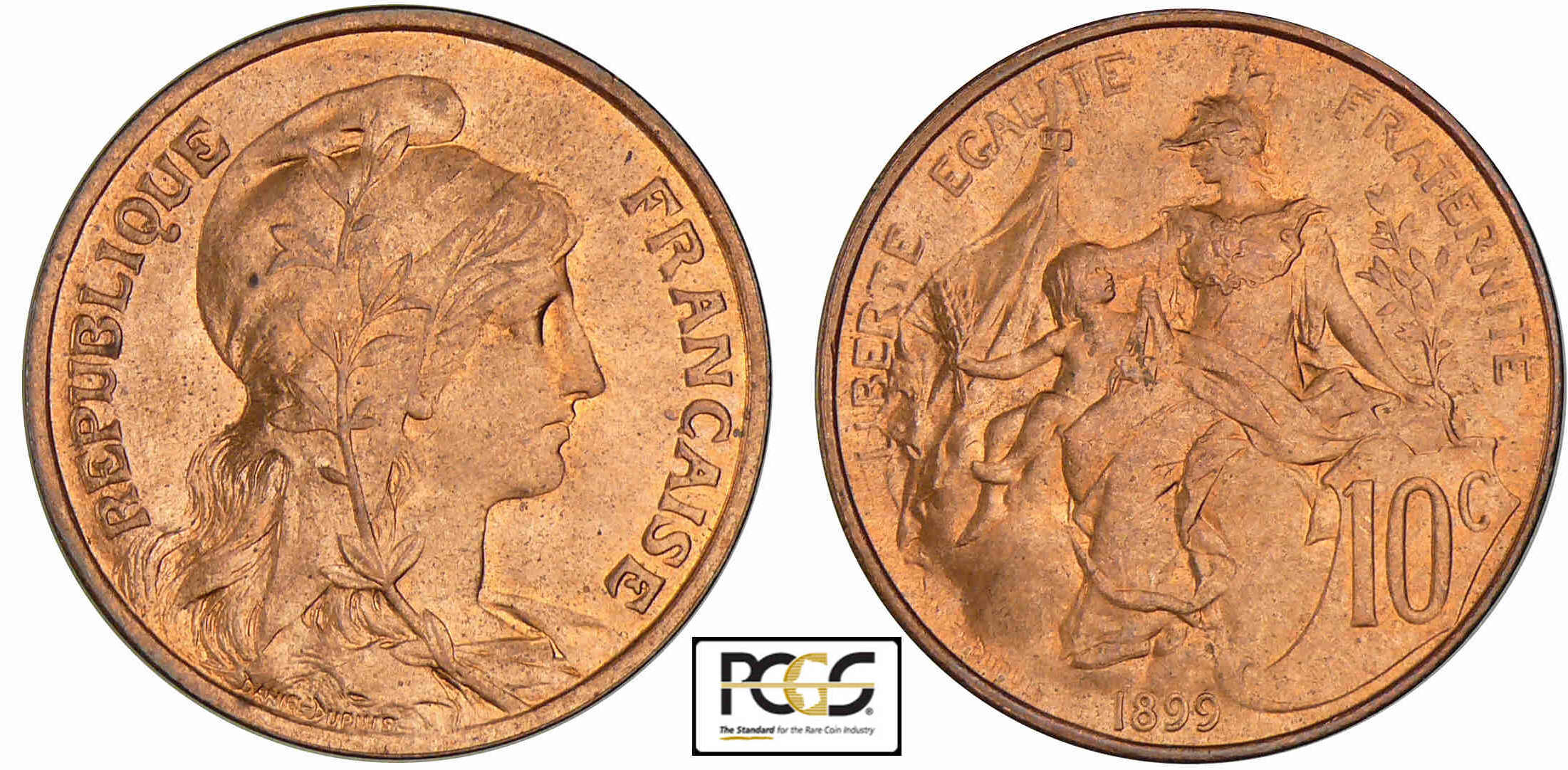 Revers : R/ LIBERTE EGALITE – FRATERNITE // 10 c dans un cartouche. La République cuirassée et drapée, assise à gauche sur un rocher.