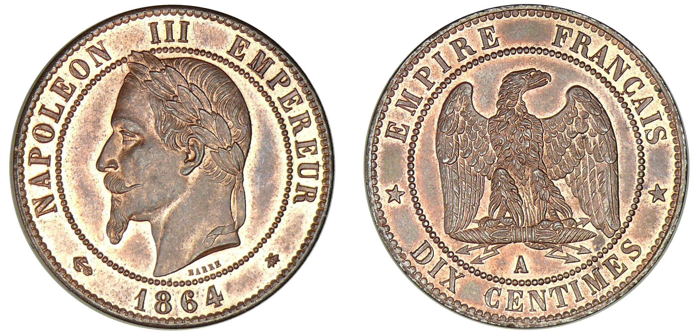10 centimes Napoléon III – tête laurée 1864 A (Paris)