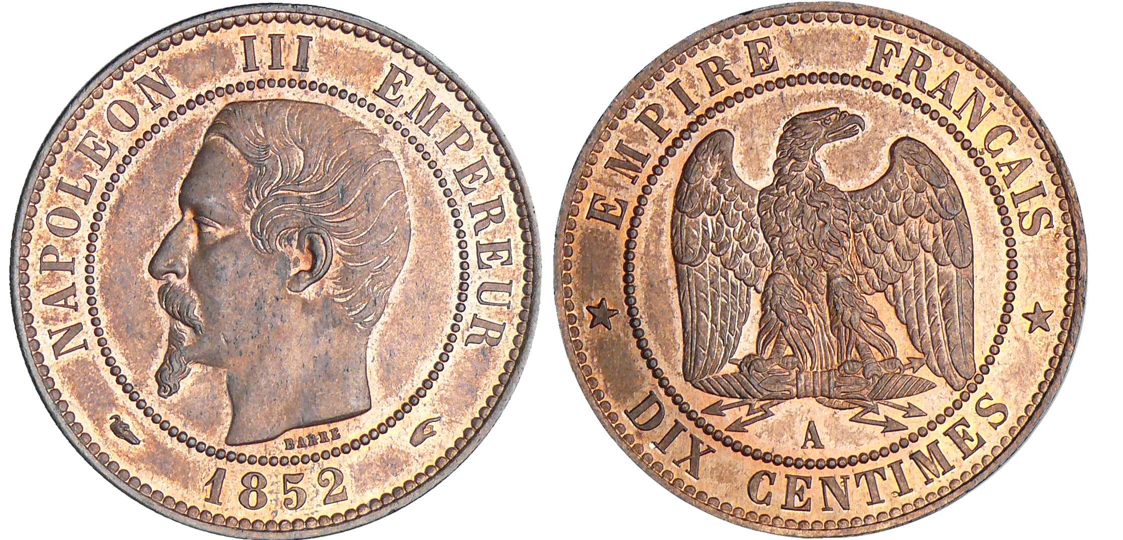 10 centimes Napoléon III tête nue – 1852 A (Paris)