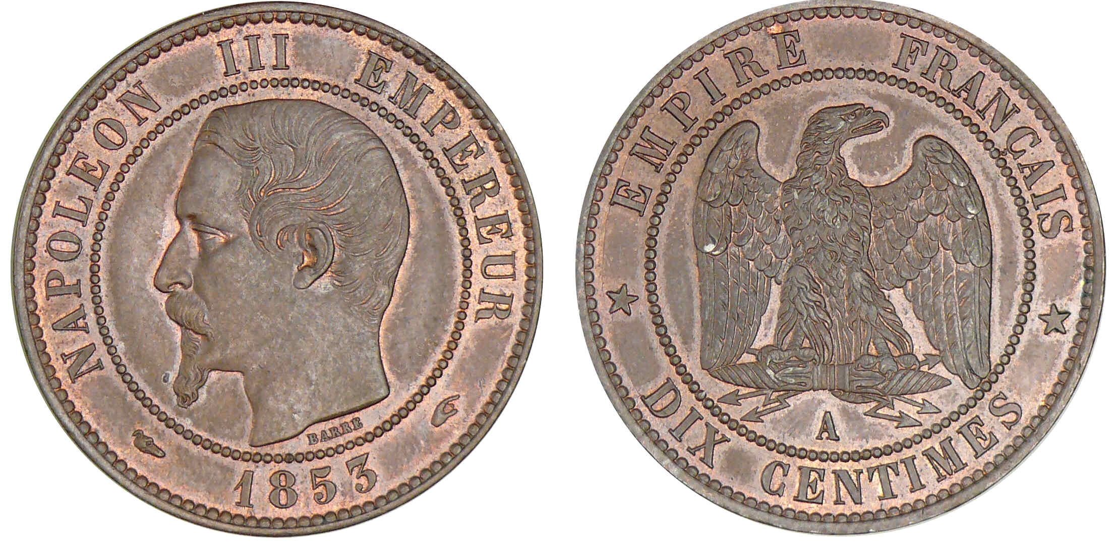 10 centimes Napoléon III tête nue 1853 A (Paris)