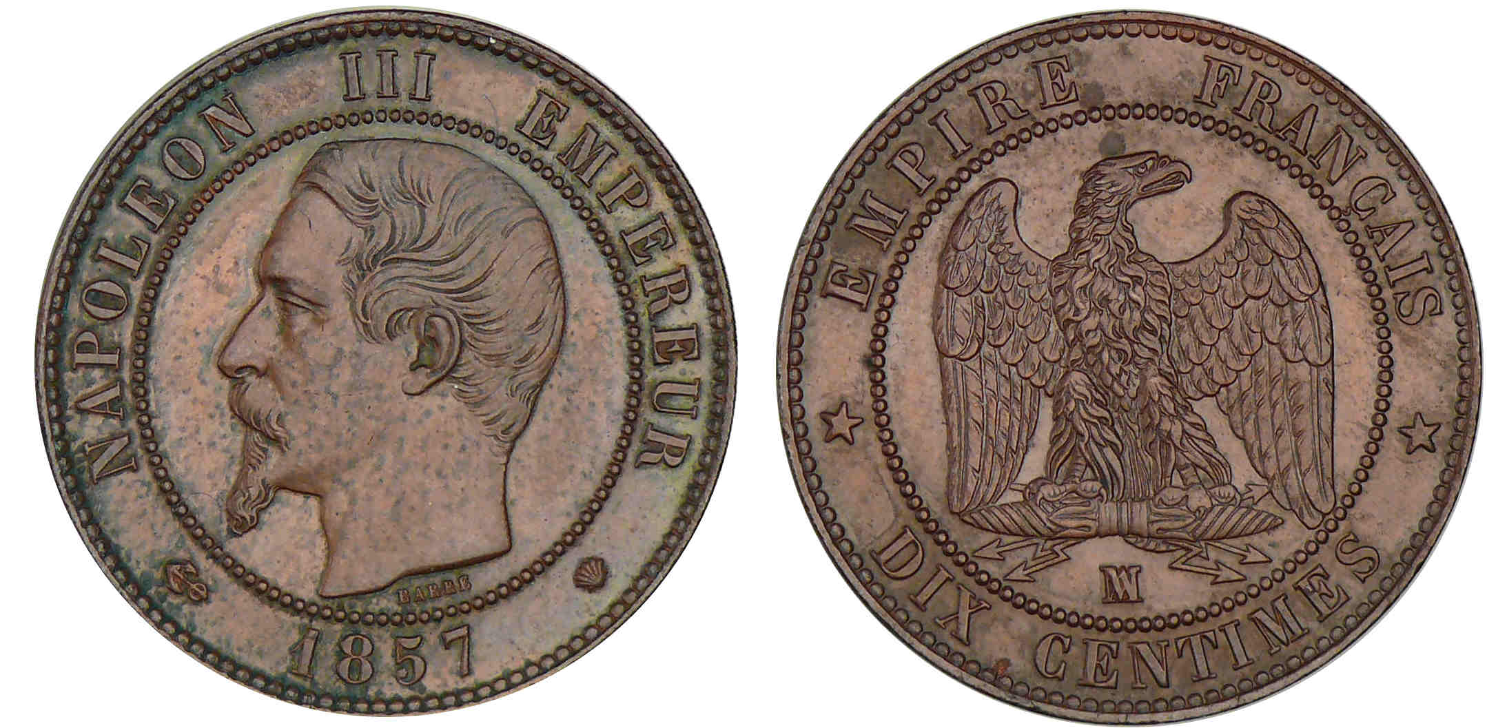 10 centimes Napoléon III tête nue 1857 MA (Marseille)