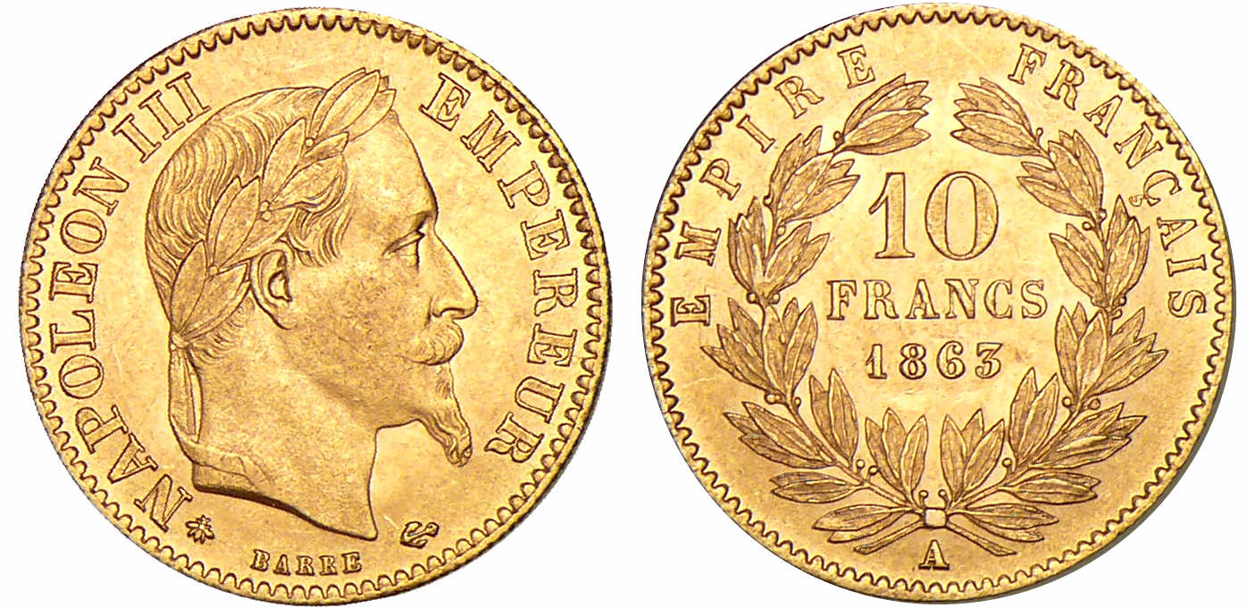 10 francs Napoléon III tête laurée – 1863 A (Paris)