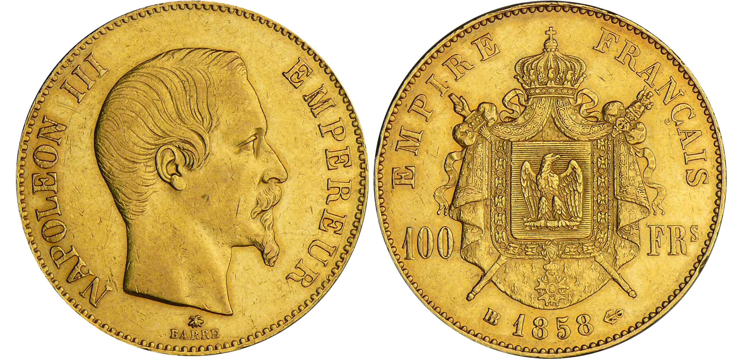 100 francs Napoléon III tête nue – 1858 BB (Strasbourg)