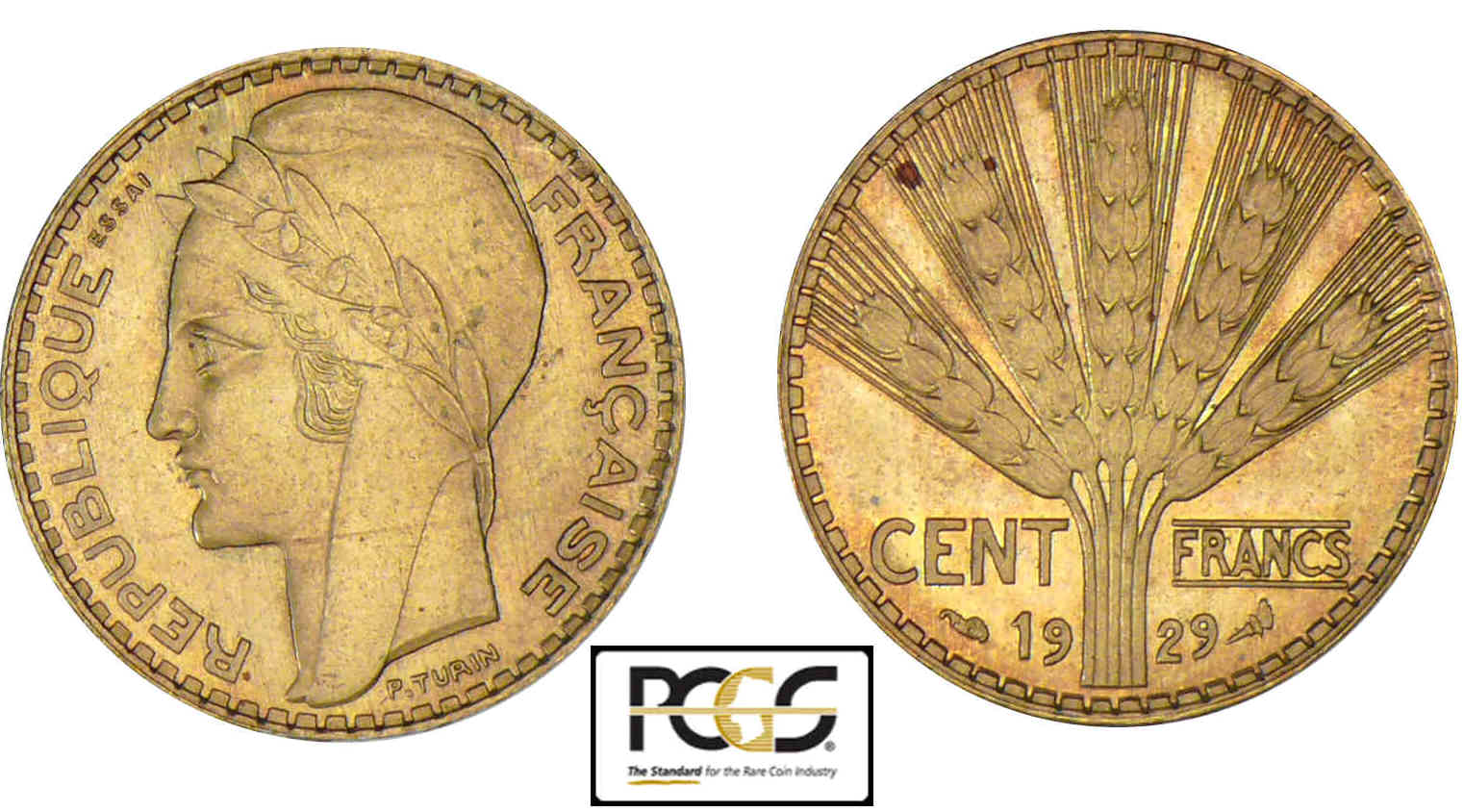 / 100 francs Turin – Essai bronze aluminium 1929