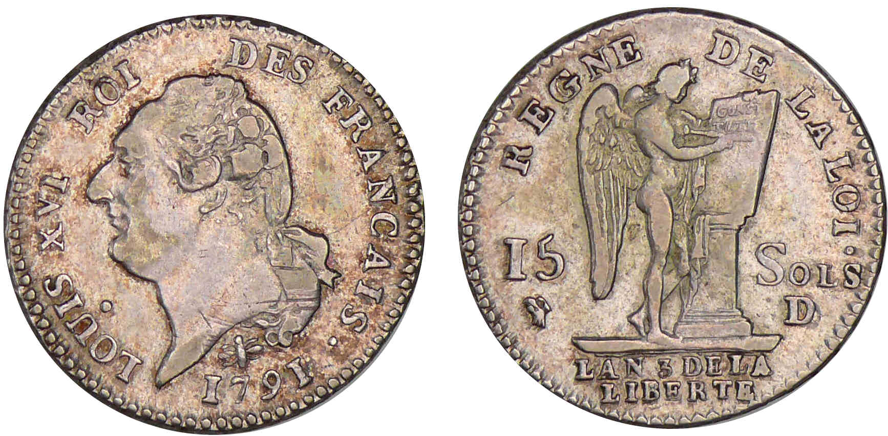 15 sols type FRANCAIS 1791 D (Lyon) – 2ème semestre