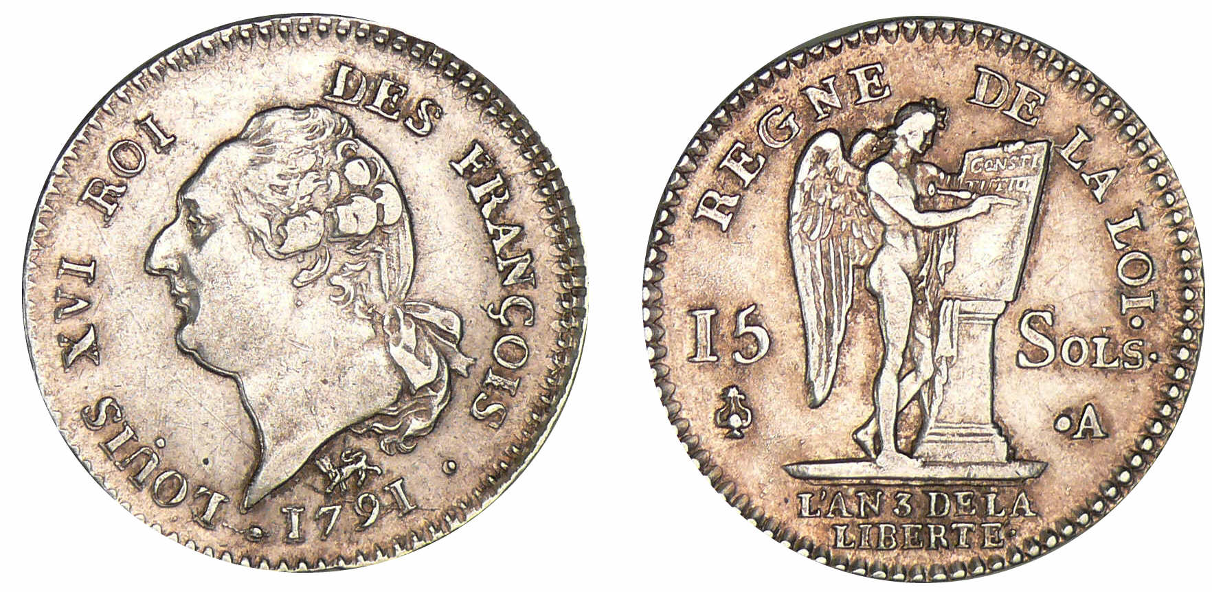 Avers : A/ LOUIS XVI ROI DES FRANCOIS (millésime). Buste du roi à gauche.