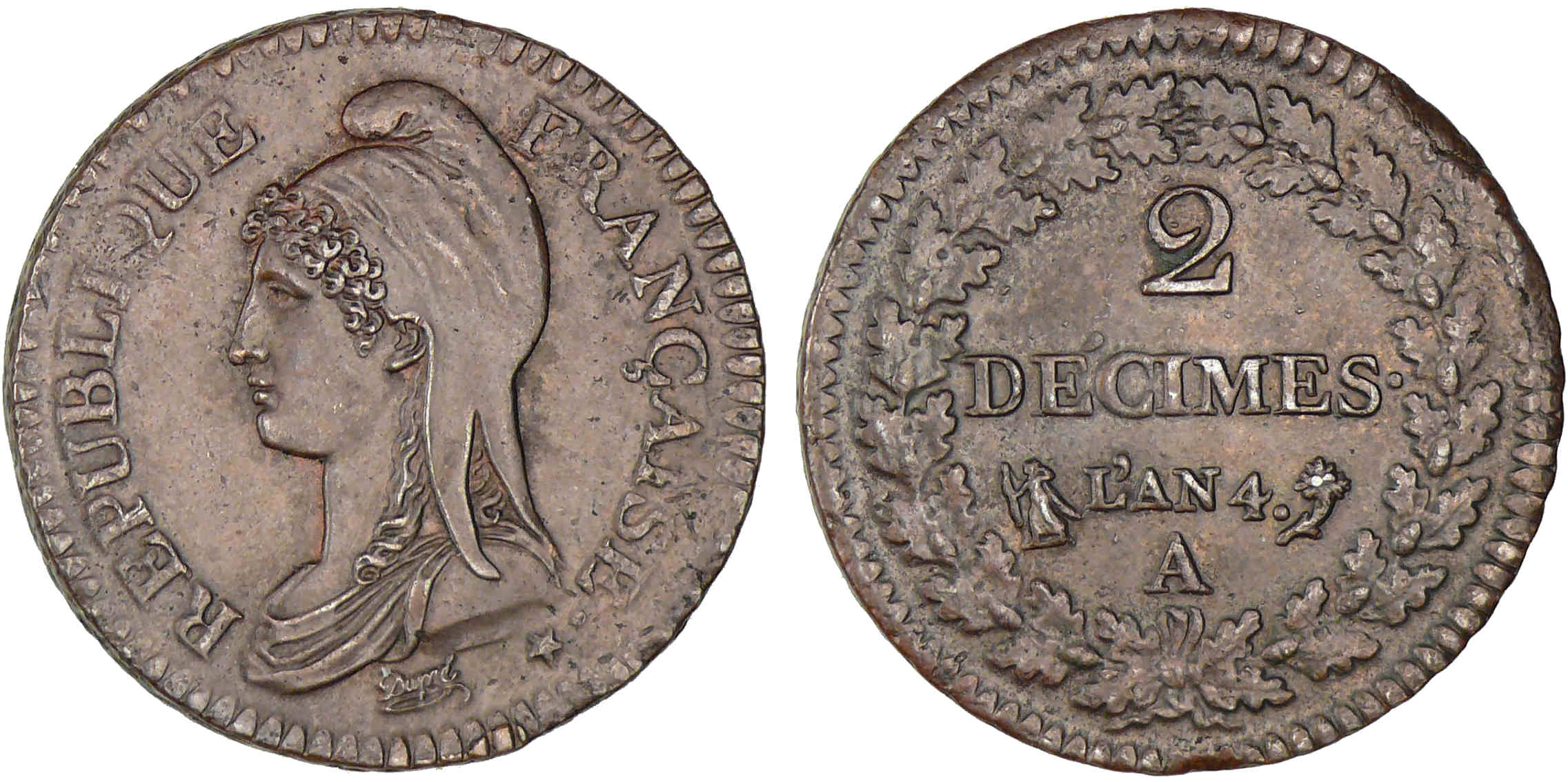 R/ 2 / DECIMES. dans une couronne de chêne.