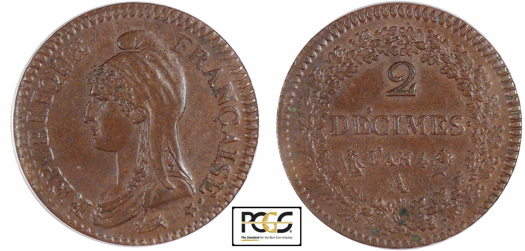 R/ 2 / DECIMES. . dans une couronne de chêne.