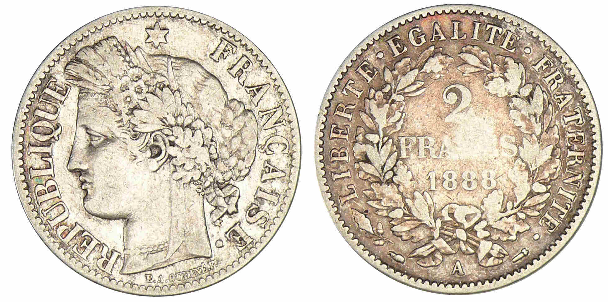 quantité de 2 francs Cérés avec légende 1888 A (Paris)