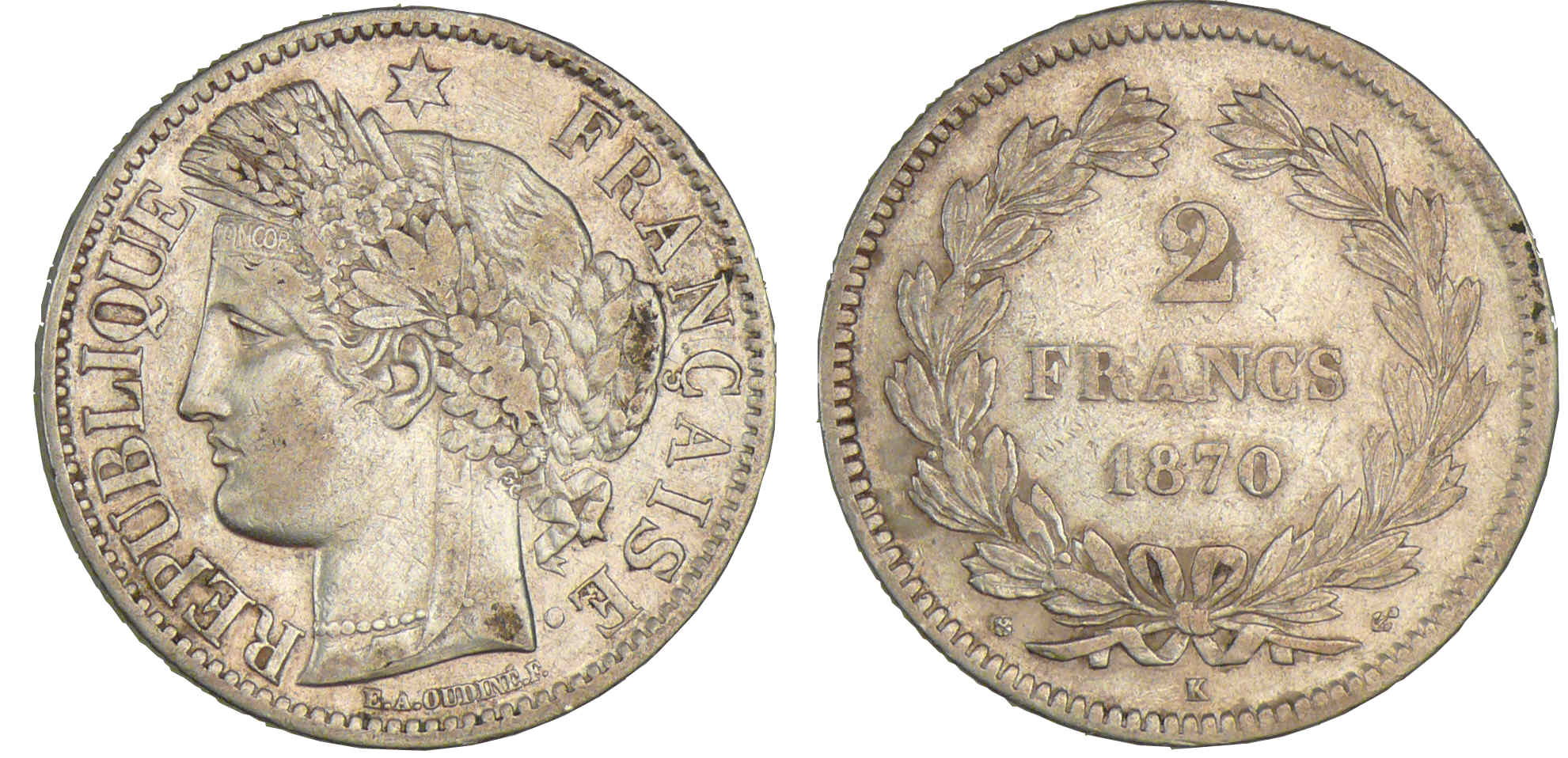2 francs Cérés sans légende 1870 K (Bordeaux)