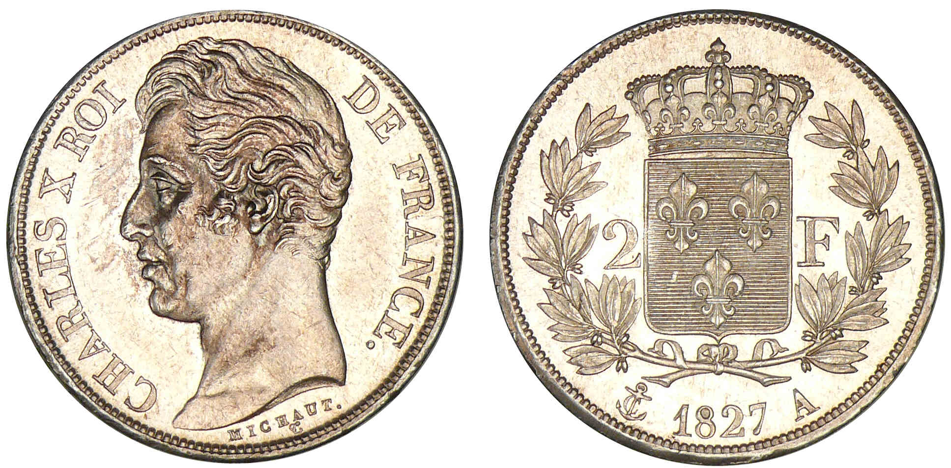 2 francs Charles X 1827 A (Paris) – Flan miroir