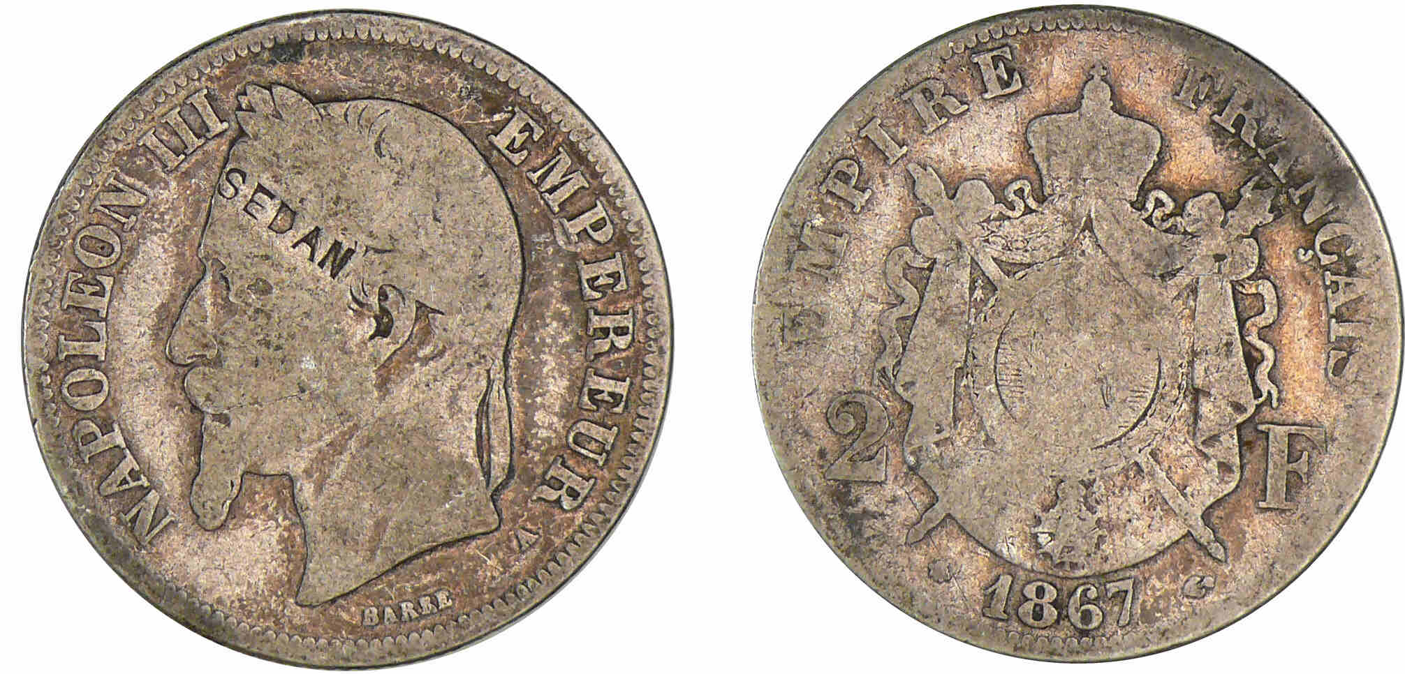 2 francs Napoléon III tête laurée 1867 A (Paris) – Satirique