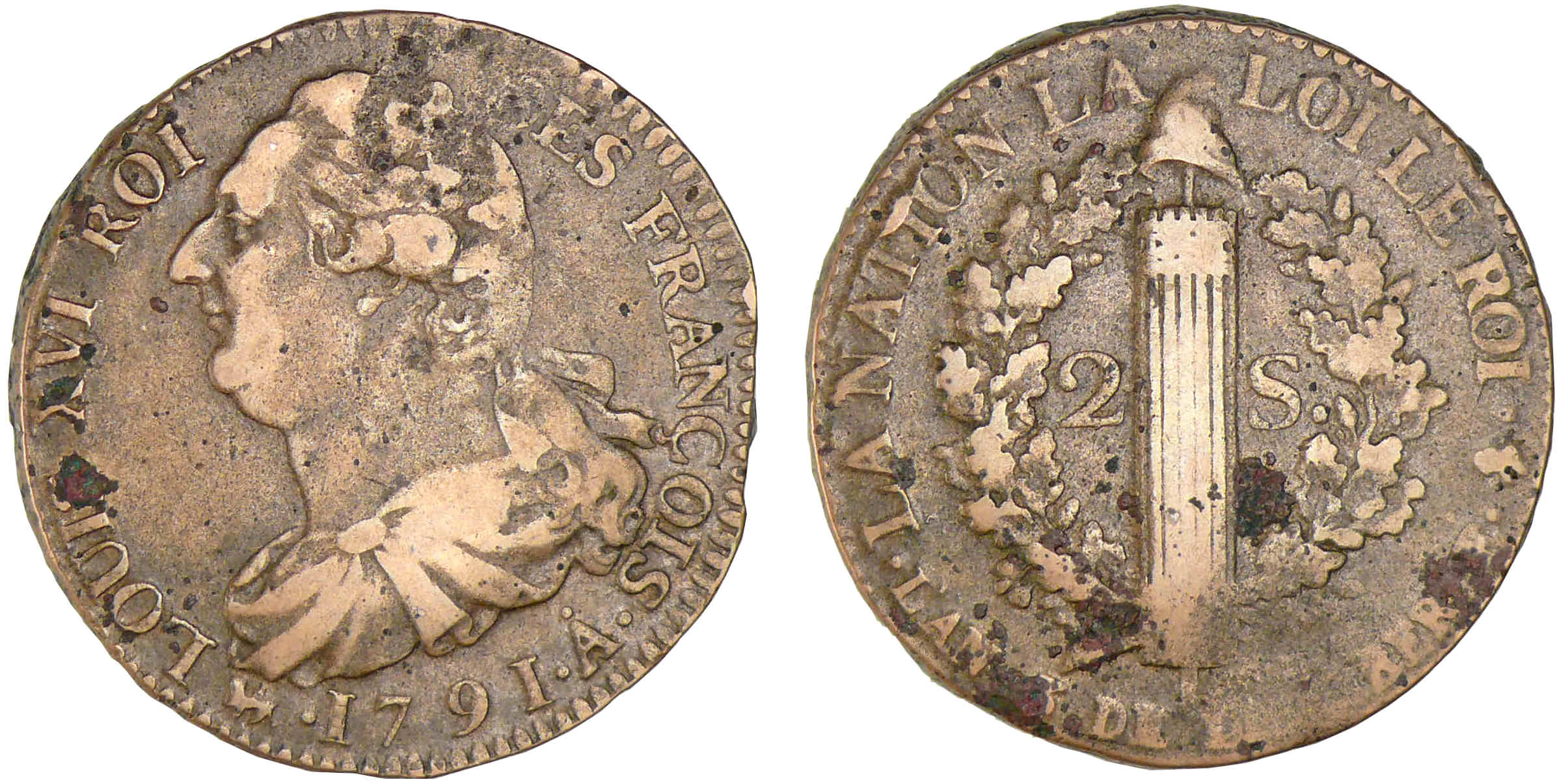 / 2 sols au faisceau type FRANCOIS – 1791 A (Paris)
