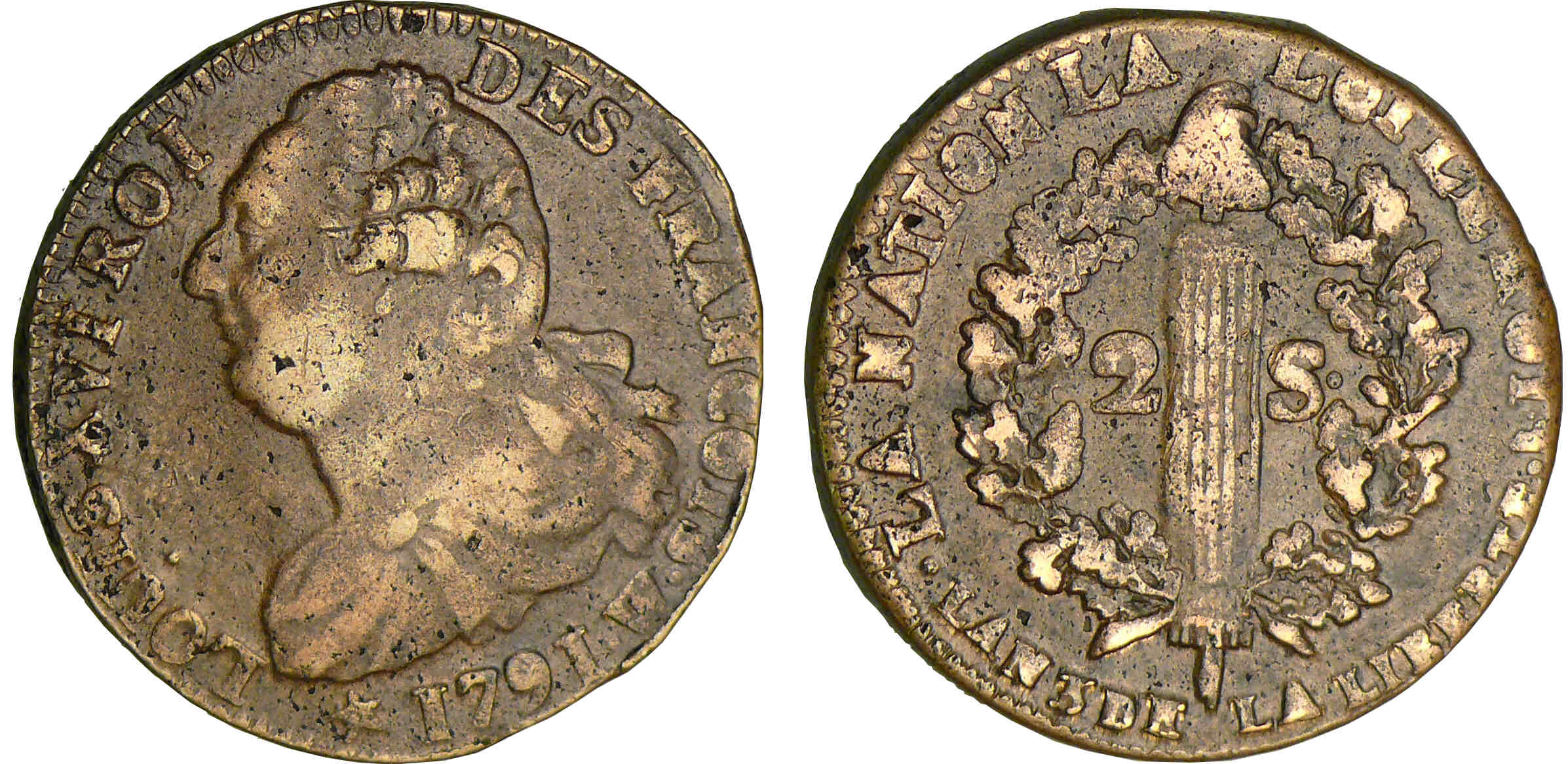 / 2 sols au faisceau type FRANCOIS – 1791 W (Lille)