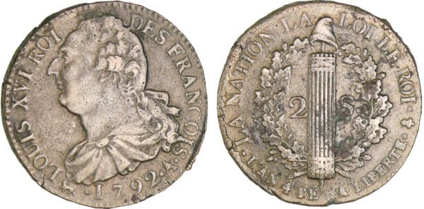/ 2 sols au faisceau type FRANCOIS – 1792 A (Paris)