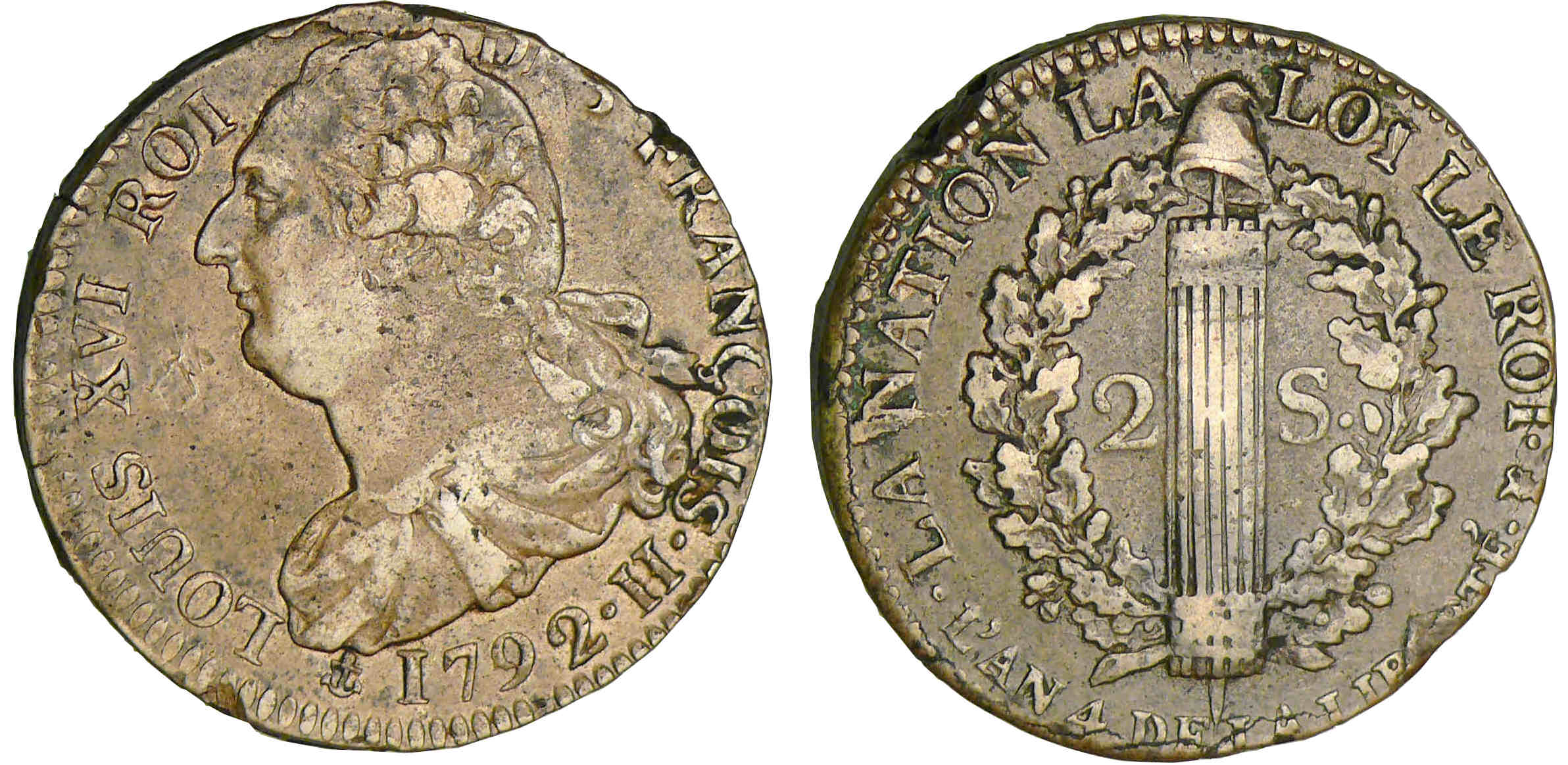 / 2 sols au faisceau type FRANCOIS – 1792 H (La Rochelle)
