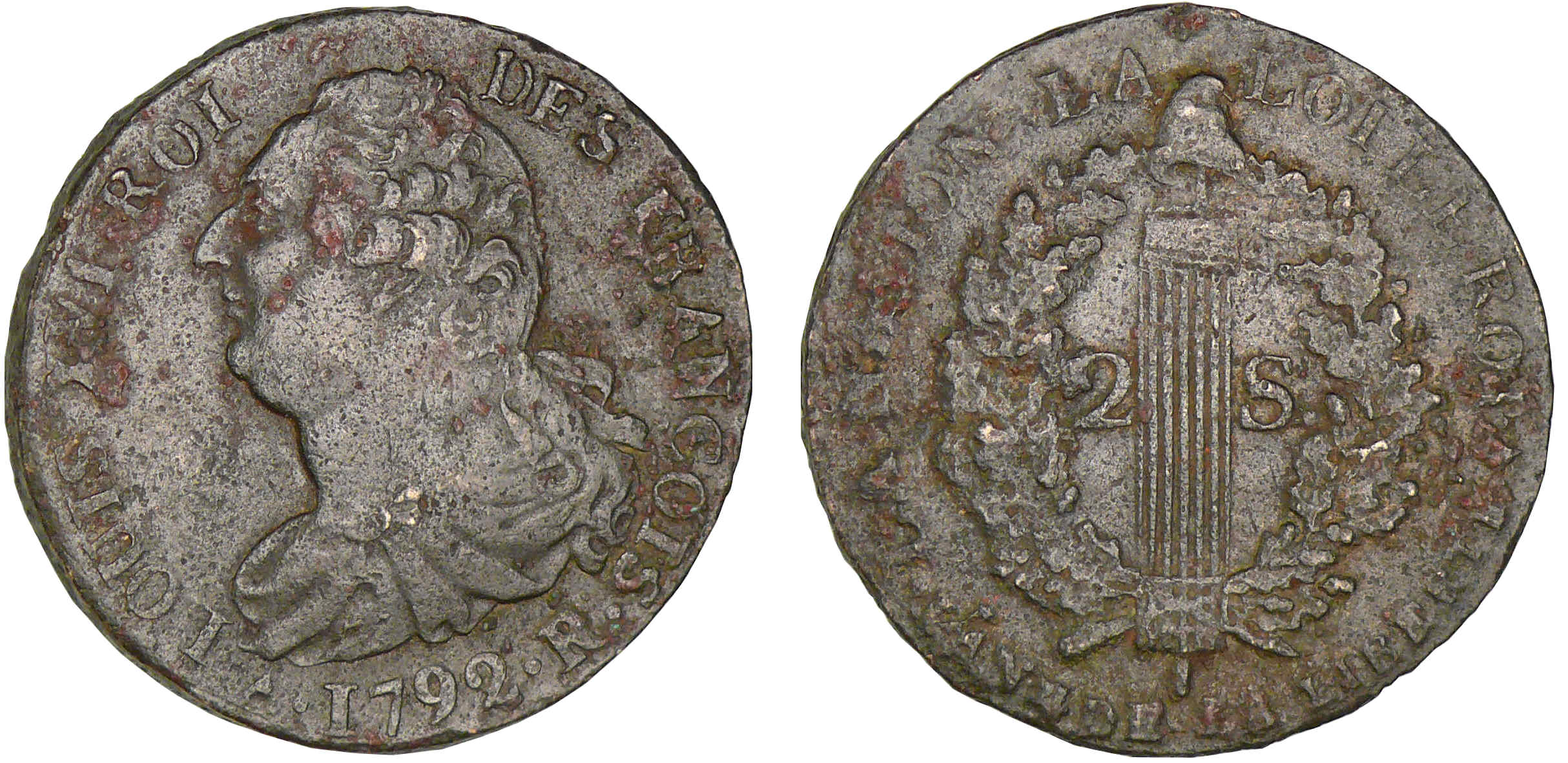 2 sols au faisceau type FRANCOIS – 1792 R (Orléans)