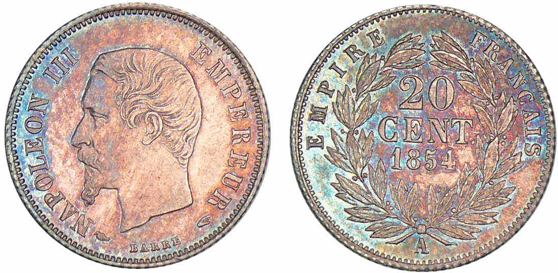 / 20 centimes Napoléon III tête nue 1854 A (Paris)