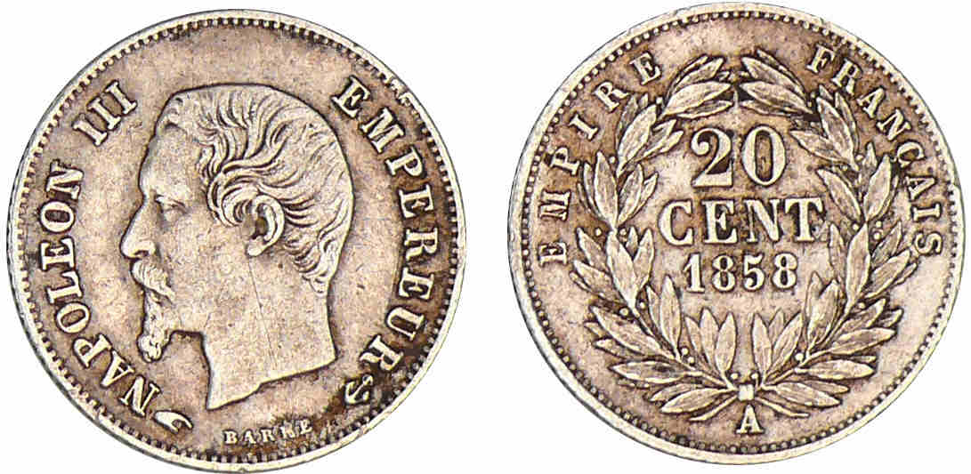 20 centimes Napoléon III tête nue 1858 A (Paris)