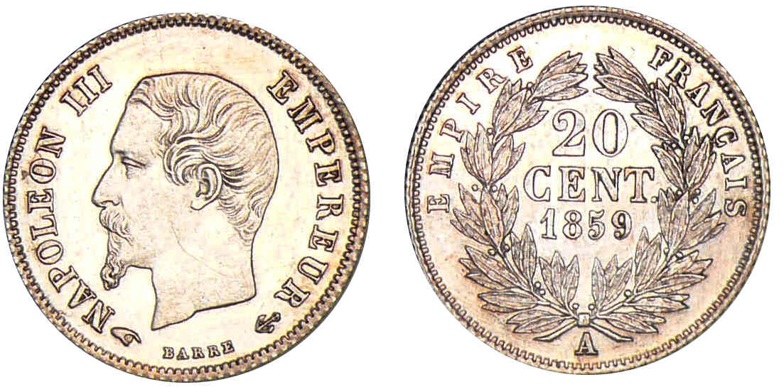20 centimes Napoléon III tête nue 1859 A (Paris)