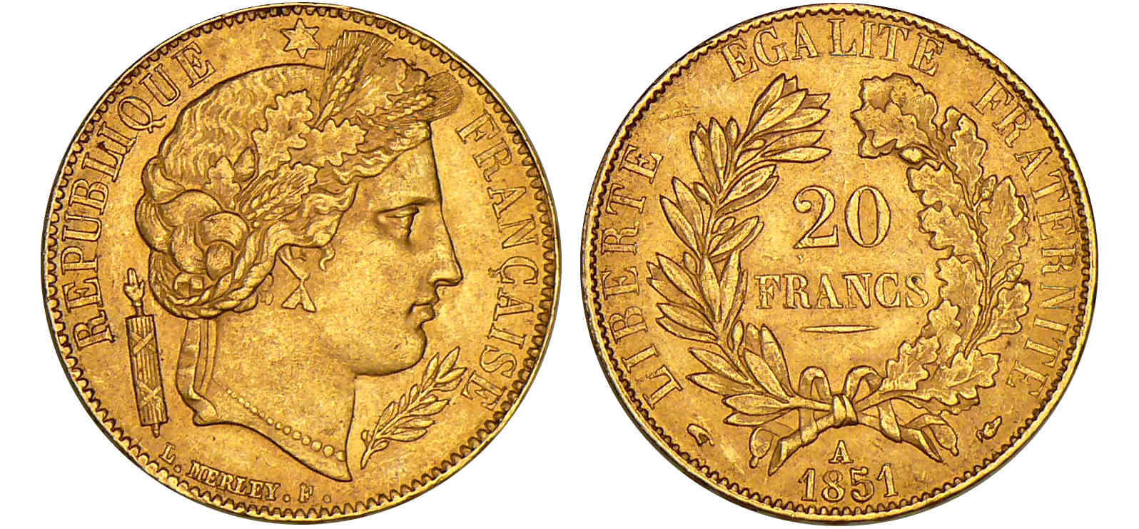 R/ Couronne formée d’une branche d’olivier à gauche et d’une branche de chêne à droite.