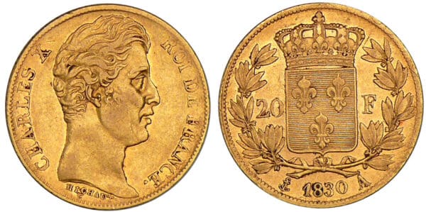 Avers : A/ CHARLES X ROI DE FRANCE. Buste nu à droite.