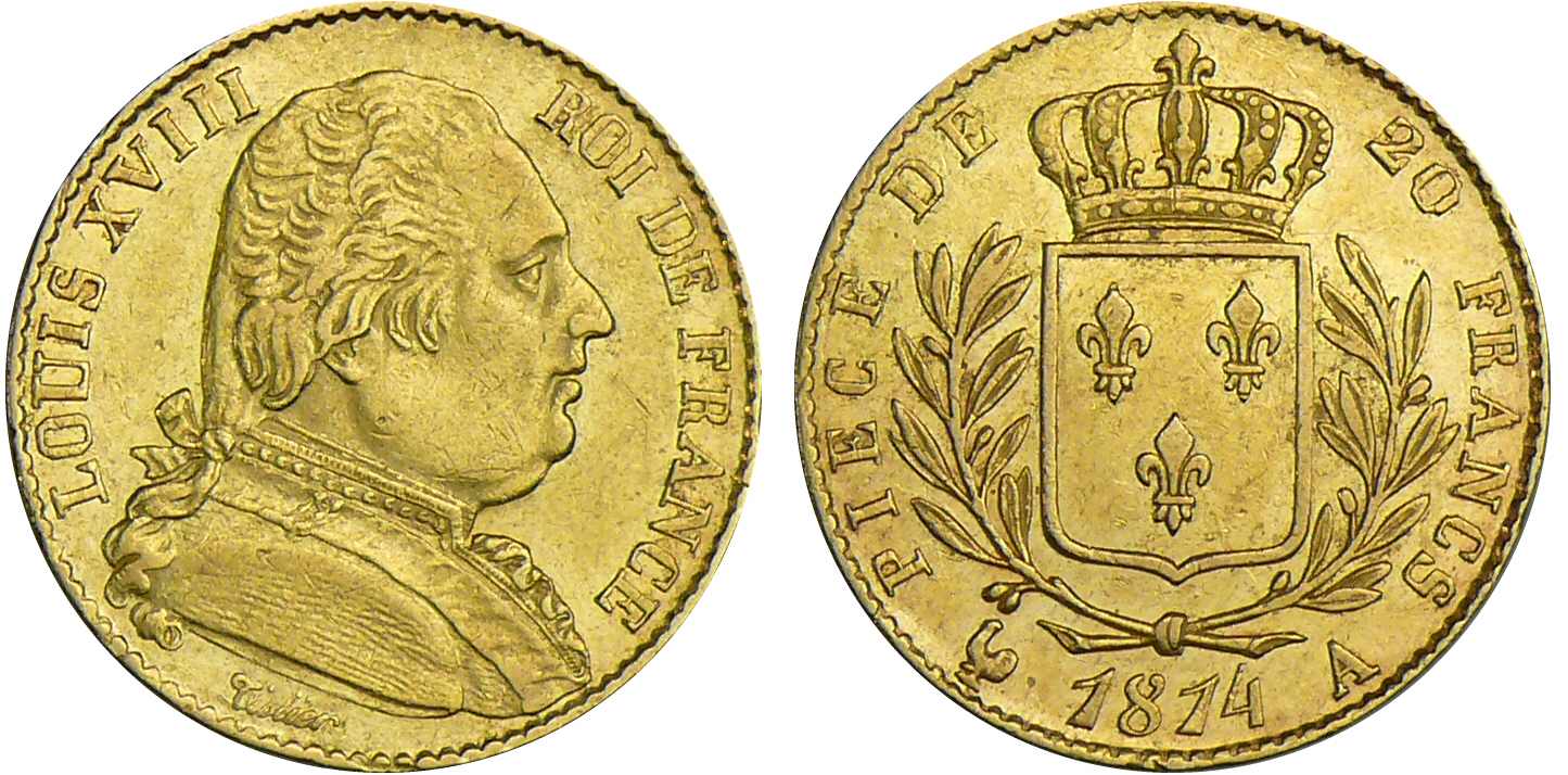 20 francs Louis XVIII au buste habillé – 1814 A (Paris)
