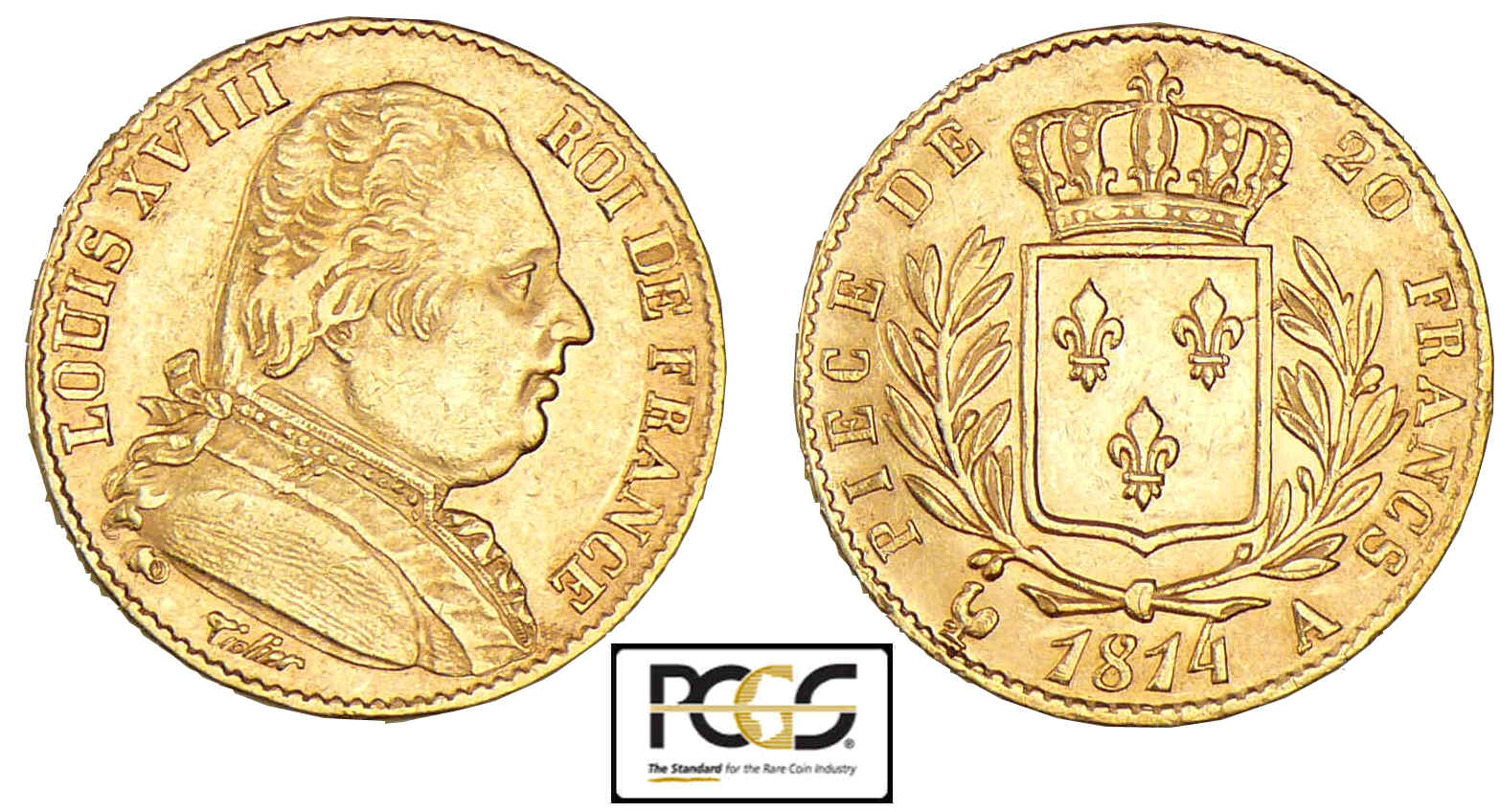 20 francs Louis XVIII au buste habillé 1814 A (Paris)