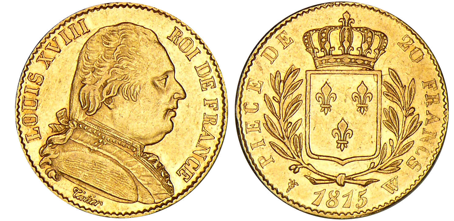 20 francs Louis XVIII au buste habillé – 1815 W (Lille)