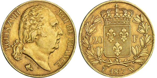 20 francs Louis XVIII au buste nu – 1817 W (Lille)