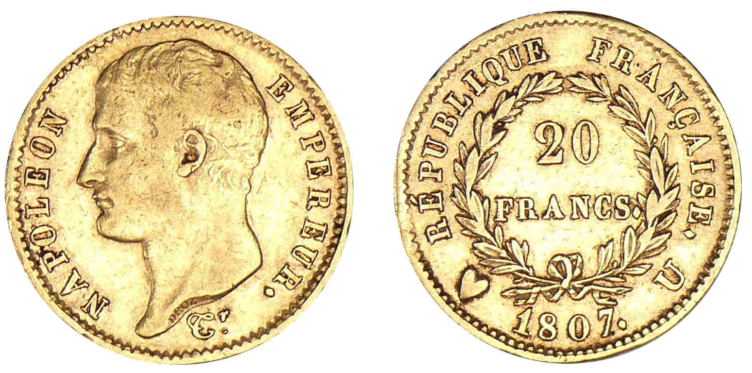 20 francs Napoléon Ier tête nue type transitoire 1807 U (Turin)