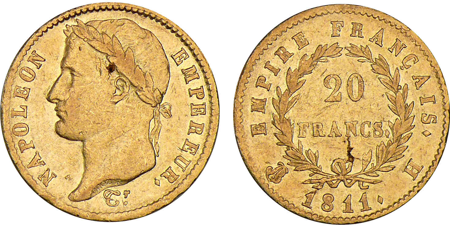 20 francs Napoléon revers empire 1811 H (La Rochelle)