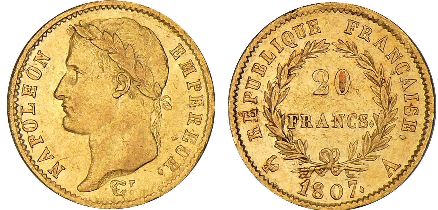 / 20 francs Napoléon revers république 1807 A (Paris)