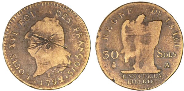 30 sols type FRANCOIS 1792 A (Paris) – Faux d’époque