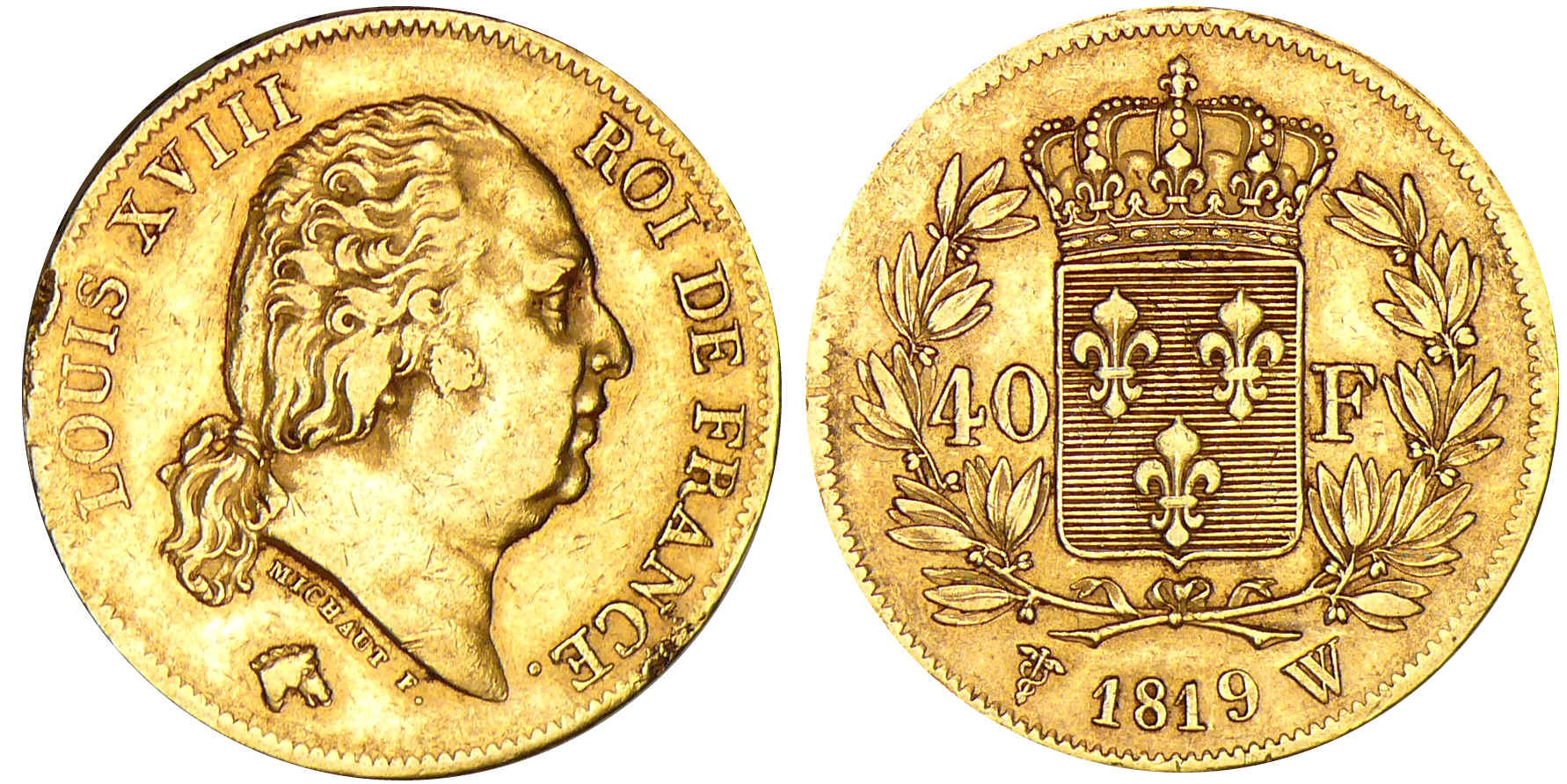 40 francs Louis XVIII au buste nu – 1819 W (Lille)